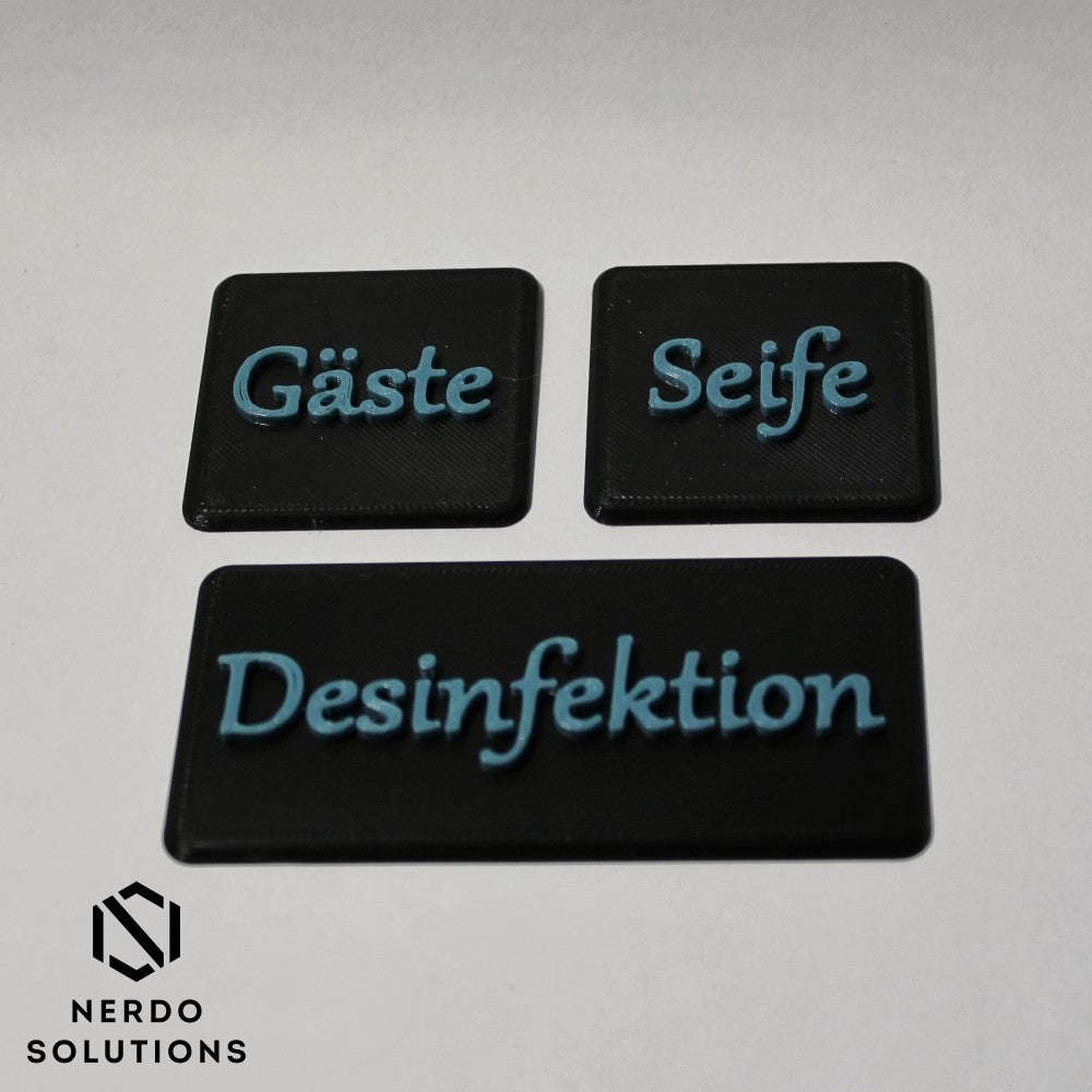 Sende uns nach deiner Bestellung eine Nachricht an einen unserer unten genannten Kanäle mit den folgenden Daten: Wunschtext, Schriftart, Farbe Schild, Farbe Text.