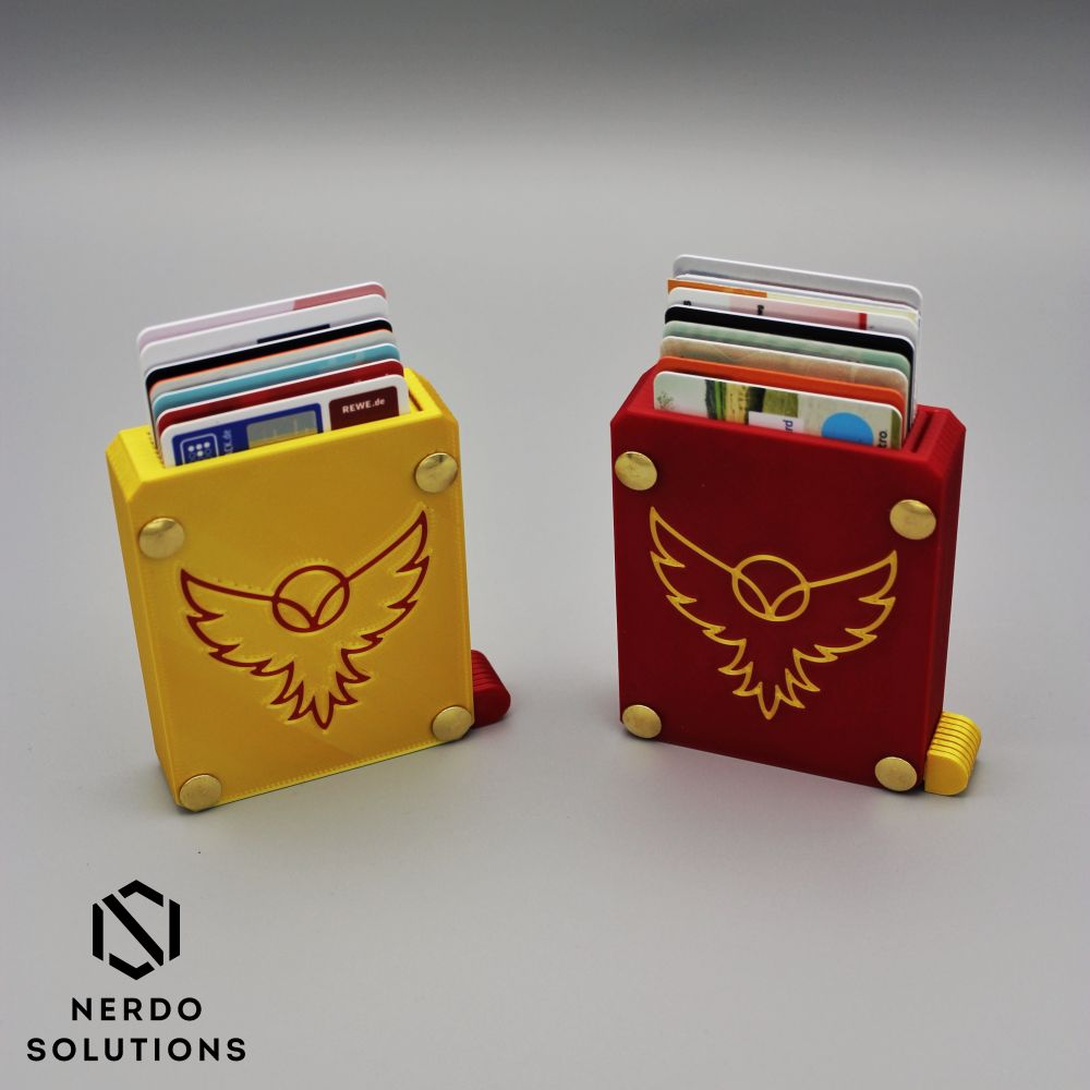 - Fächermechanismus, welcher jede Karte in einer anderen Höhe aus dem Wallet schiebt. Für einfachstes Entnehmen und bessere Übersicht.